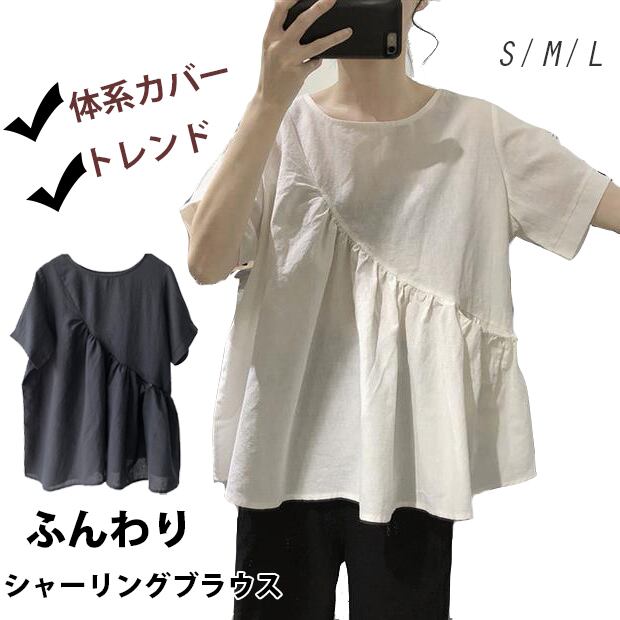 体系カバー◎トレンド◎ ふんわり シャーリングブラウス