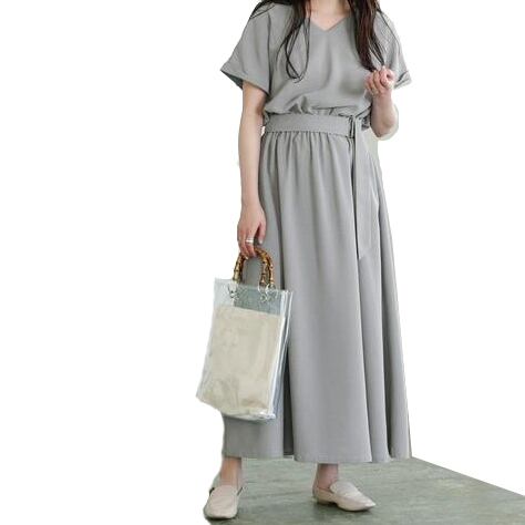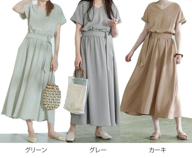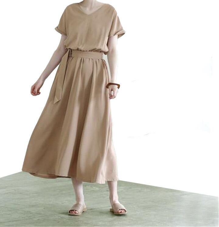 【海外からの取り寄せ】2021新作 春夏 レディース 無地 Vネック ギャザー ワンピース フレアスリーブ 半袖 トレンド 着回し #[onepiece233_17800]【送料込み】【250712】