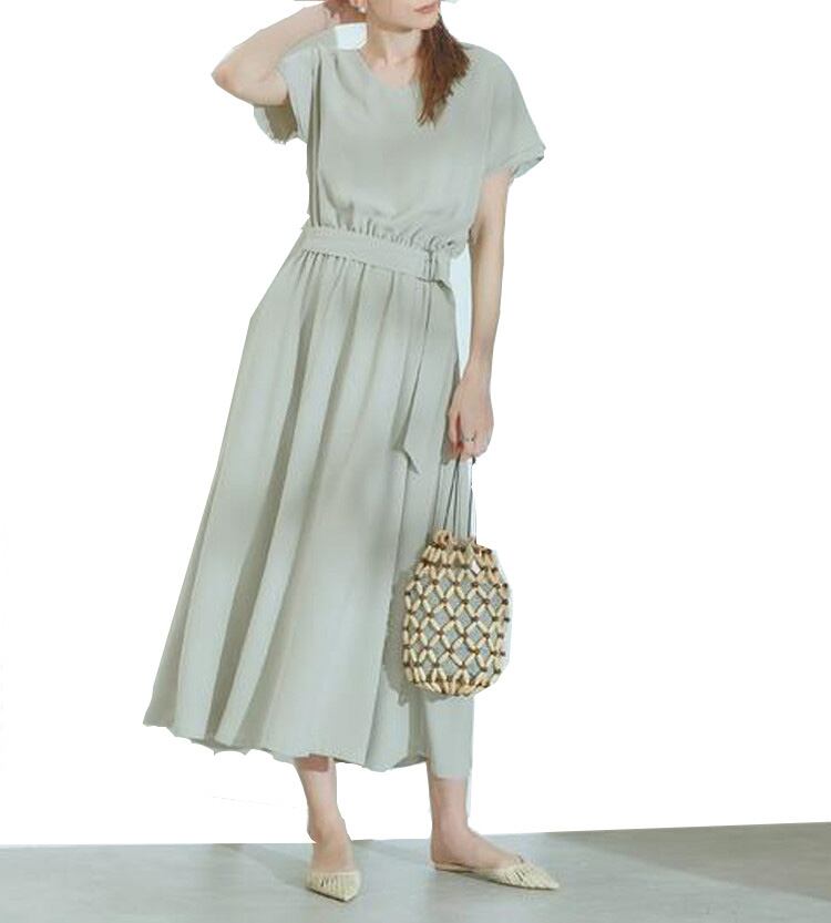 ウエストギュッとスカートはふんわり優雅なシルエット ウエストギャザーワンピース