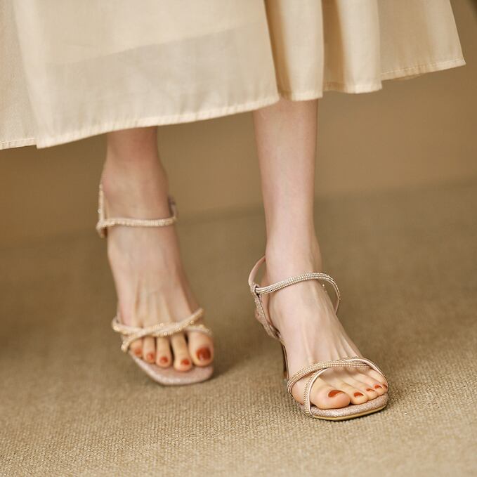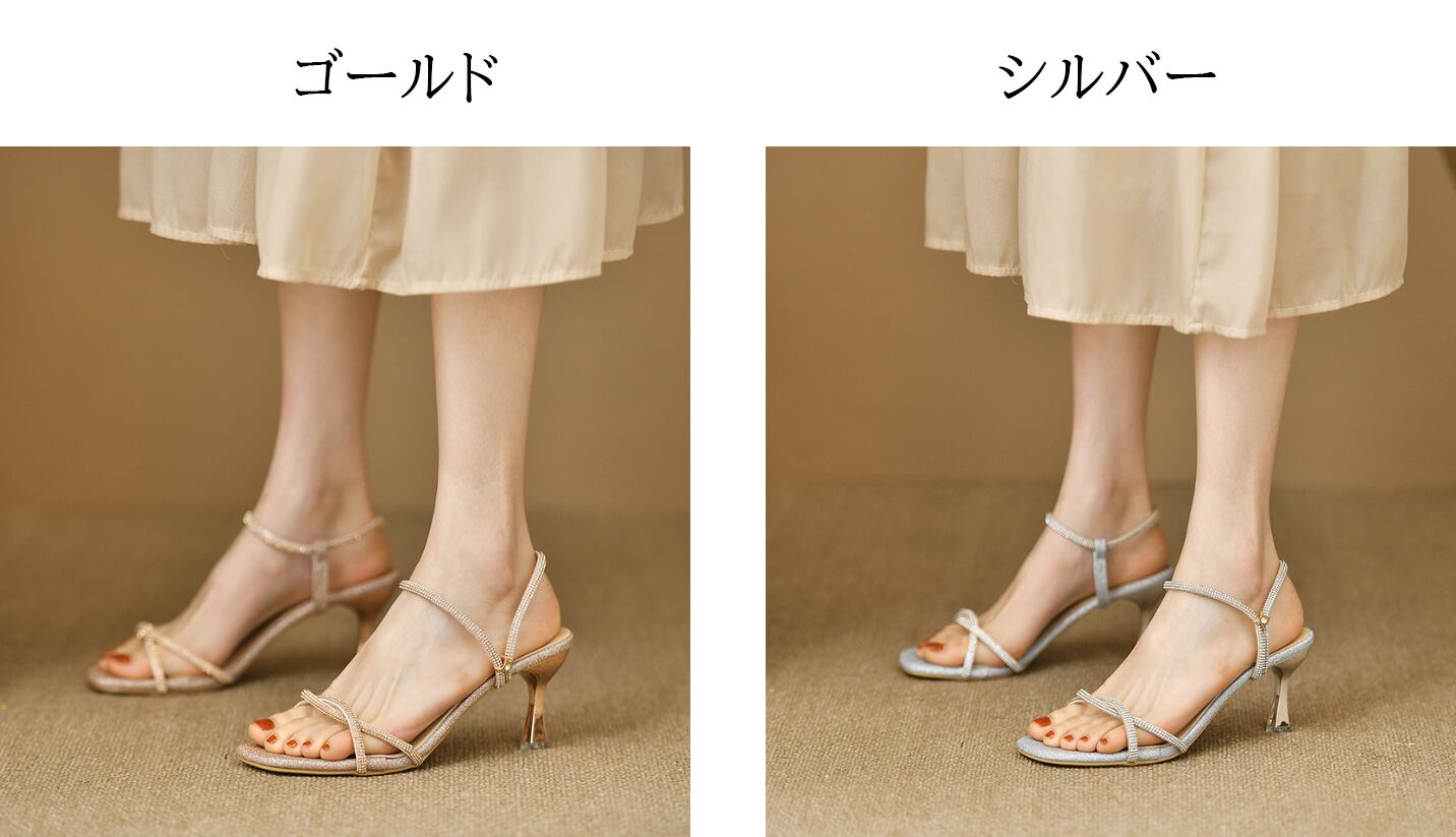 【海外からの取り寄せ】2025新作 レディース キラキラサンダル 華奢 ハイヒール 美脚 履きやすい 約7cmヒール 脚長 幅広 オープン #[sandal740_15800]【送料込み】【250716】