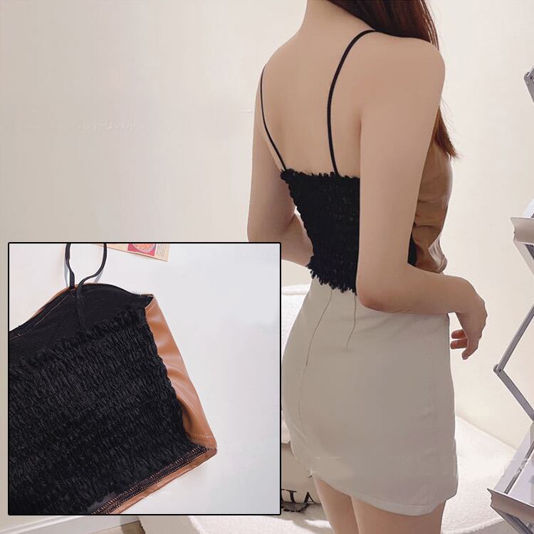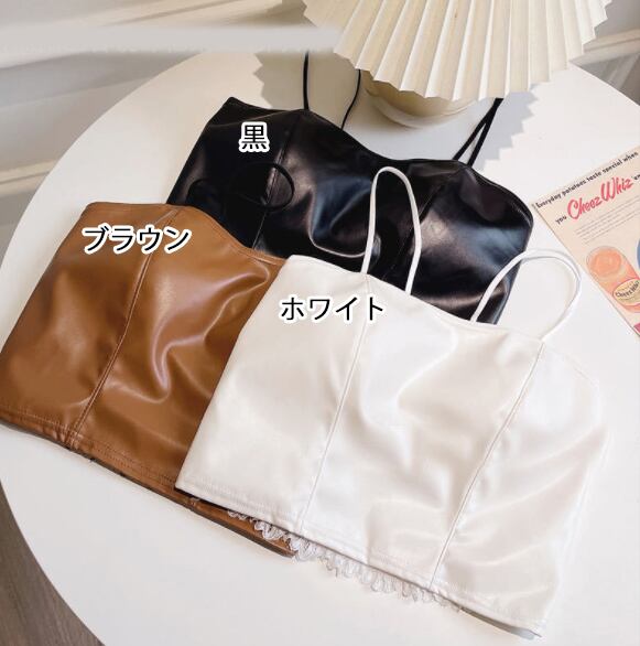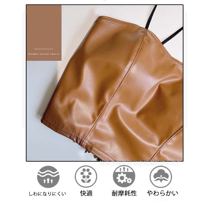 【海外からの取り寄せ】2022新作 キャミソール ノンワイヤー 伸縮性 インナー ランジェリー レザー風 光沢 通気性 胸パッド #[inner094_8200]【送料込み】【250716】