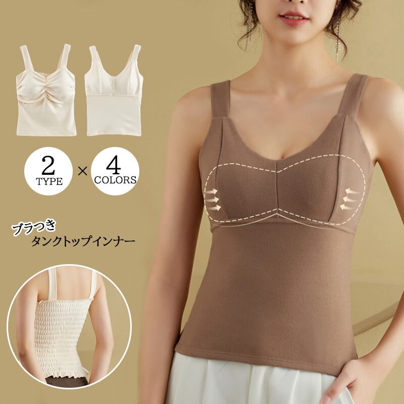【海外からの取り寄せ】2021新作 レディース ベーシック ブラ付き タンクトップ ノンワイヤー 胸パッド インナー ギャザー 保温 #[inner073_8500]【送料込み】【250716】