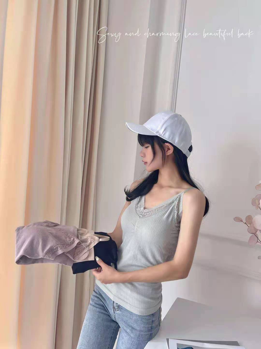 【海外からの取り寄せ】2021新作 レディース 見せブラ ブラ付きキャミソール ノンワイヤー スチールリムなし インナー #[inner065_7800]【送料込み】【250716】