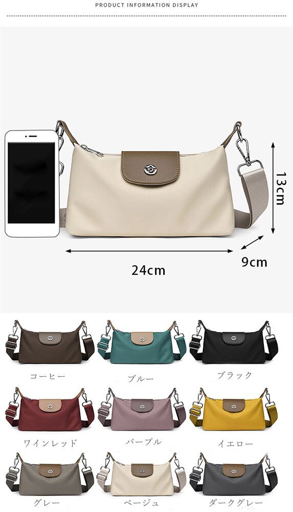 ショルダーバッグ、斜めがけ、サブバッグとしても大活躍。通勤・通学・旅行・買い物など幅広く使える。