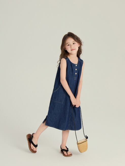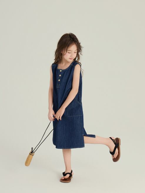 【海外からの取り寄せ】 2025新作 韓国子供服 キッズ デニムワンピース かわいい ノースリーブ オーバーサイズ #[kids873_21800]【送料込み】【250803】