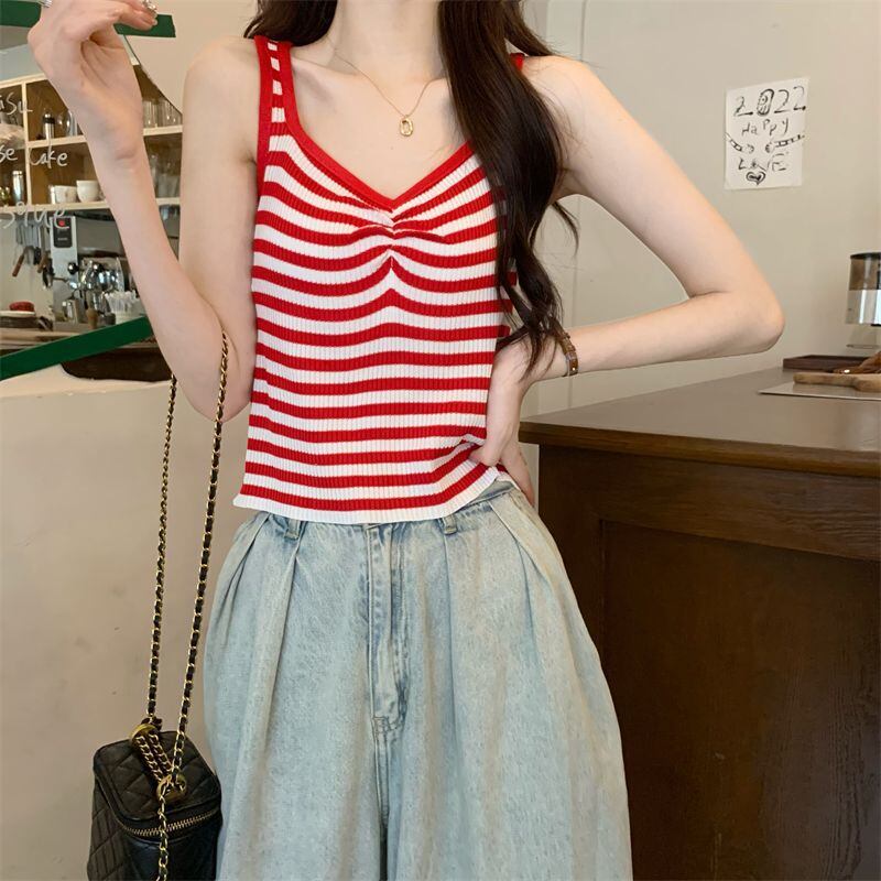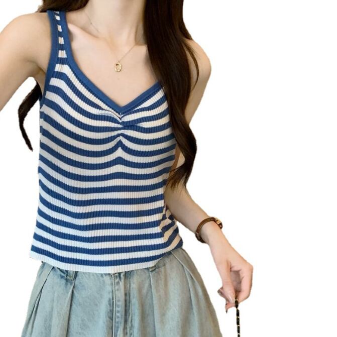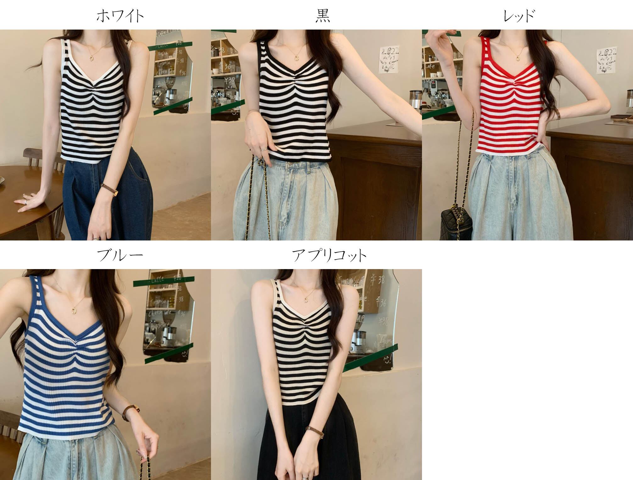 【海外からの取り寄せ】2025新作 レディース ニット キャミソール ノースリーブ インナー 伸縮性 ボーダー 着回し フィット感 #[tops659_6800]【送料込み】【250803】