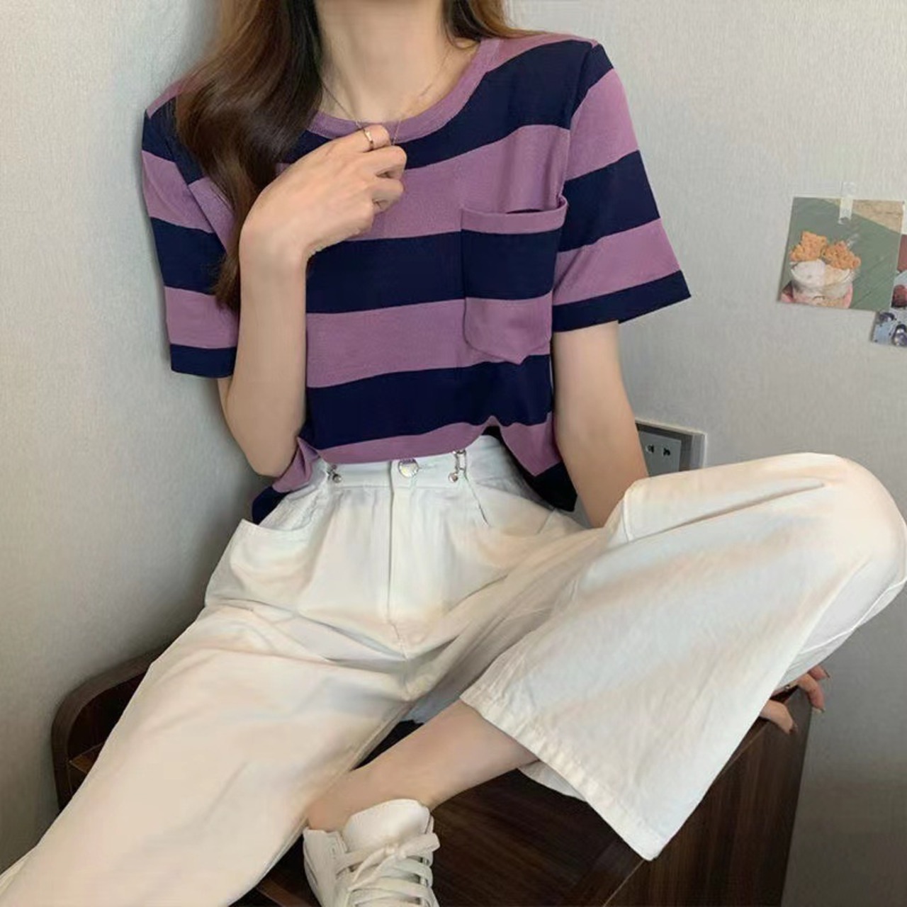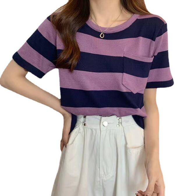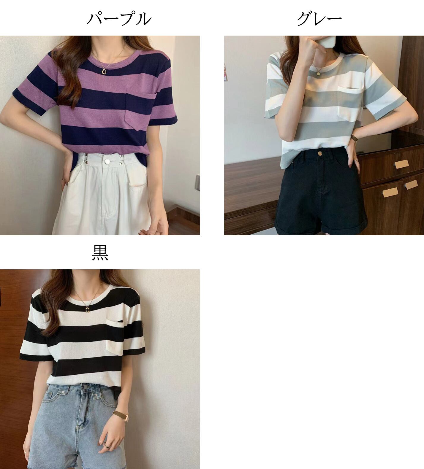 【海外からの取り寄せ】 2025新作 レディース Tシャツ 半袖 ワイドボーダープルオーバー トップス 体型カバー #[shirt510_8800]【送料込み】【250803】