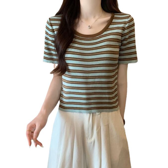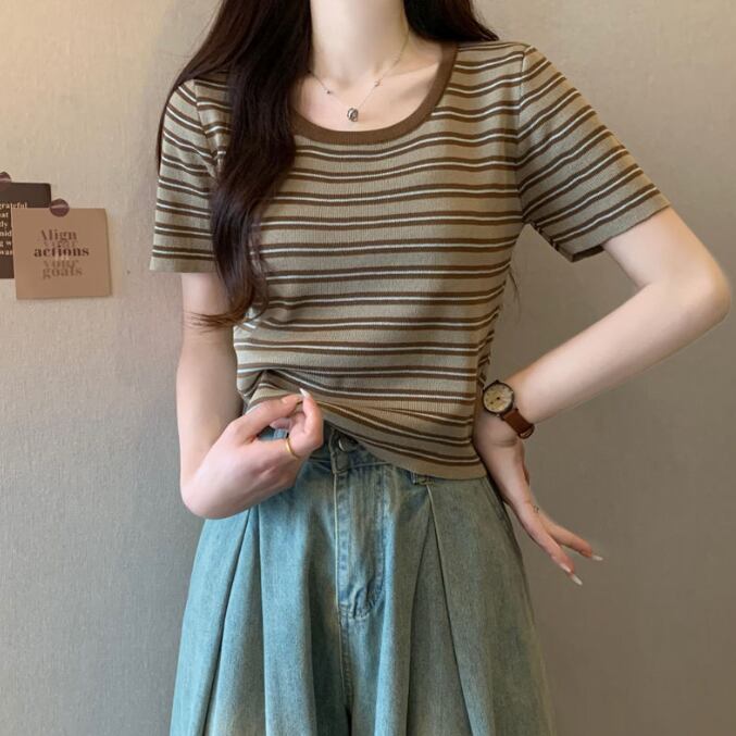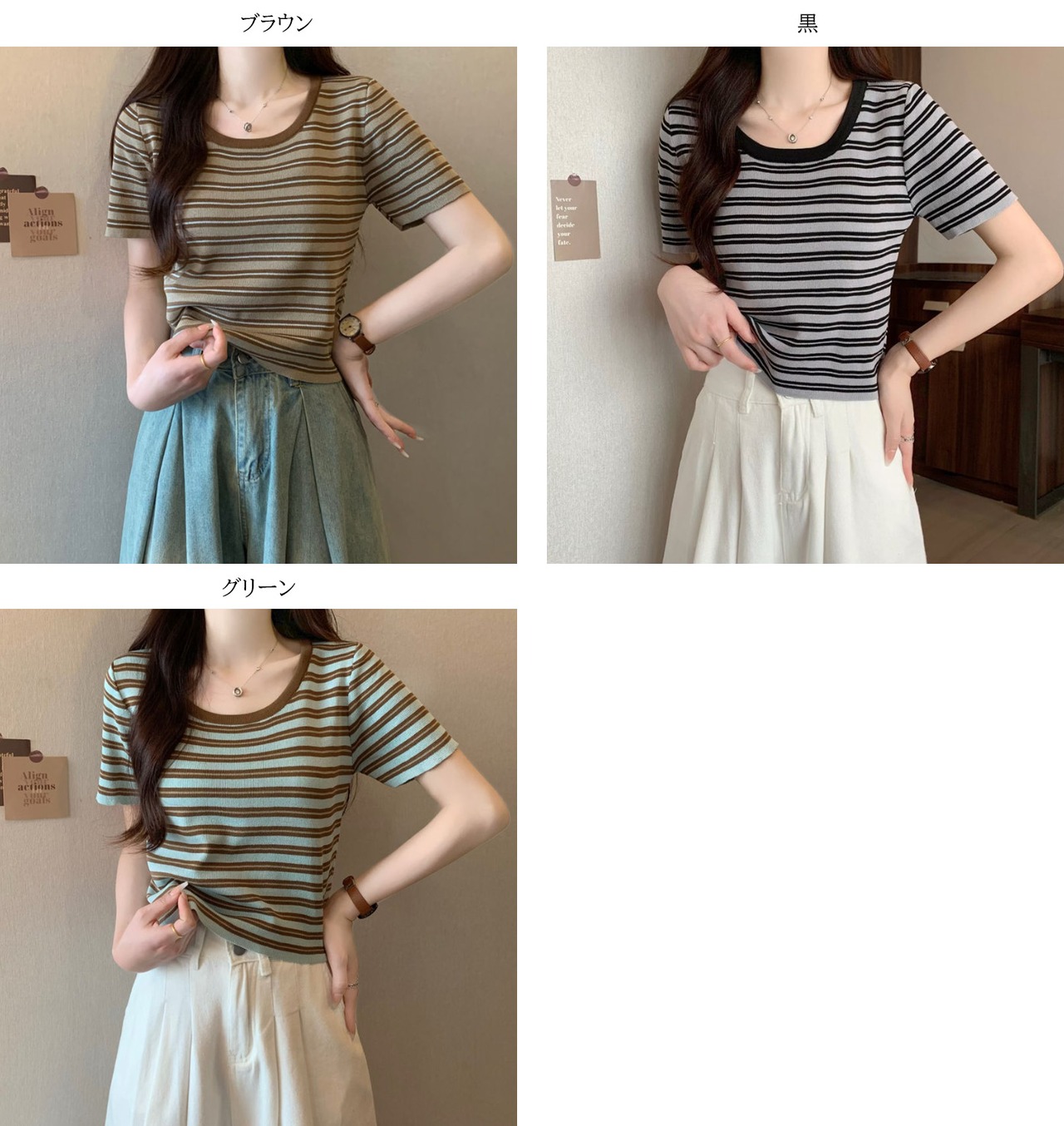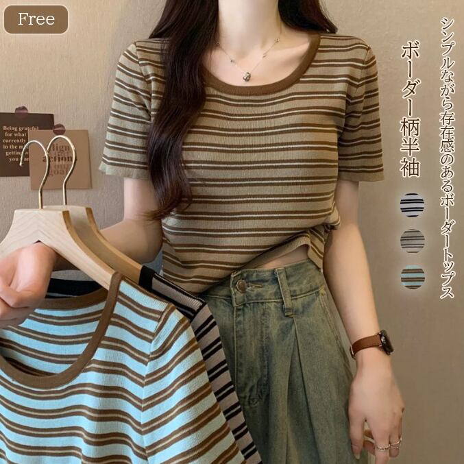 【海外からの取り寄せ】 2025新作 レディース ボーダー柄 ニットトップス プルオーバー 柔らかい カジュアル 春夏 #[tops657_9800]【送料込み】【250803】