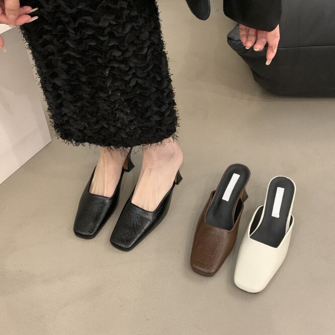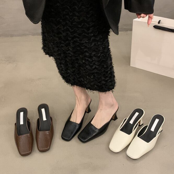 【海外からの取り寄せ】2025新作 レディース サンダル ミュール スリッポン 美脚 脚長 無地 歩きやすい チャンキーヒール #[sandal743_23800]【送料込み】【250807】