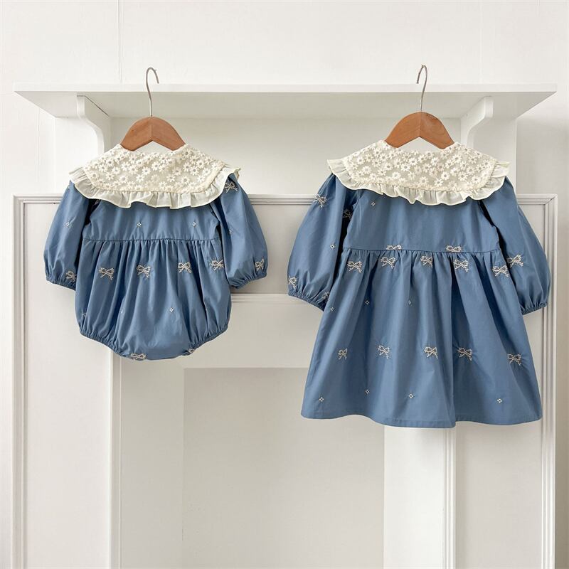 【海外からの取り寄せ】2025秋新作 子供服 姉妹お揃い 選べる7色 刺繍 ロンパース ワンピース 可愛い リボン おしゃれ #[ckd1095019_20000]【送料込み】【250718】
