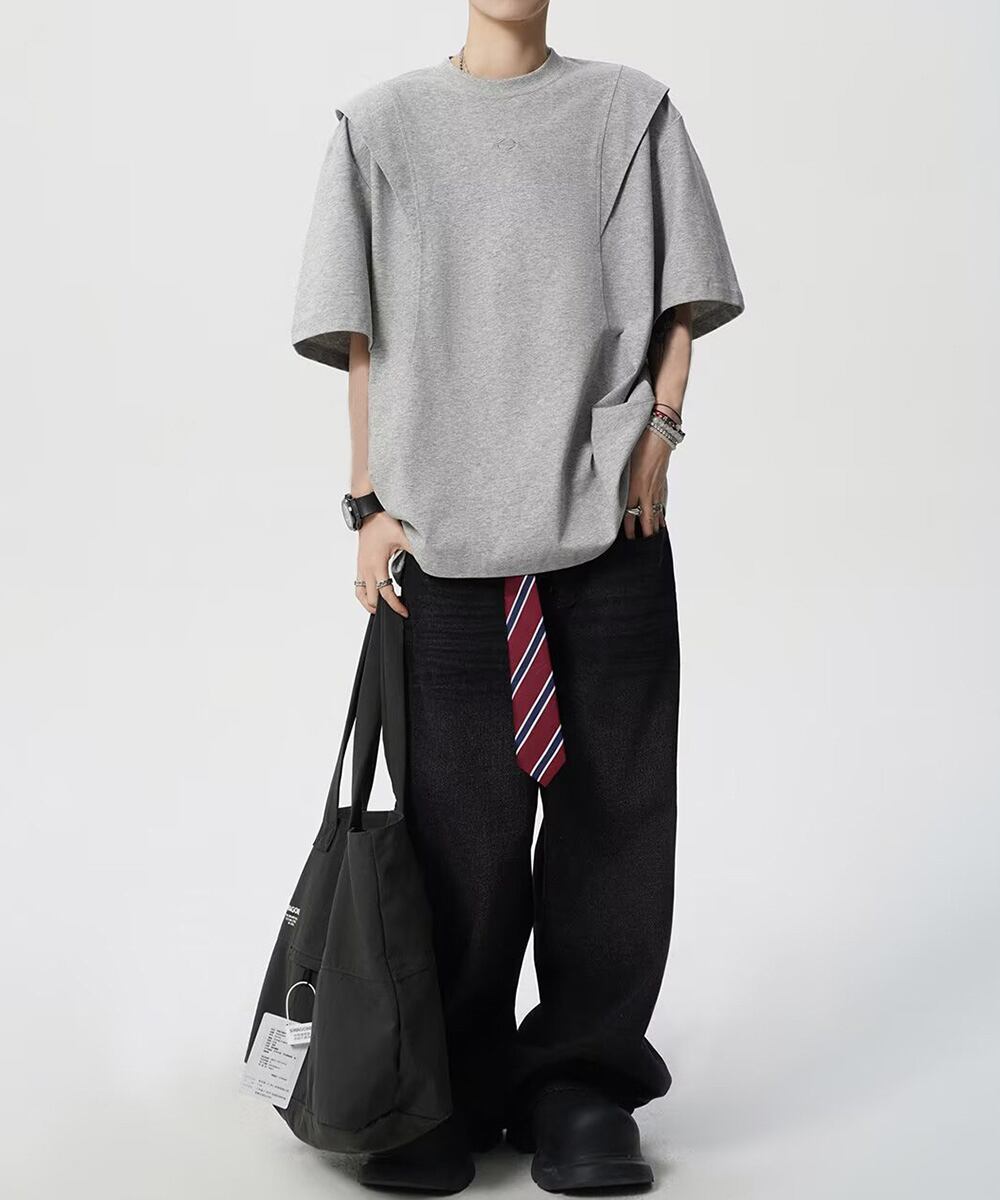 体型カバートップス シンプルお洒落男服 ベーシックTルーズ
