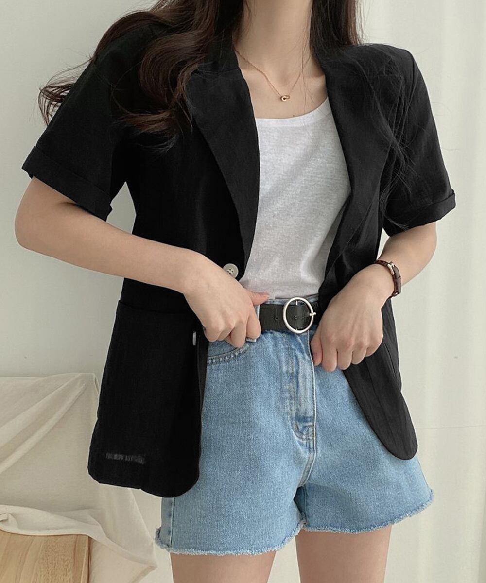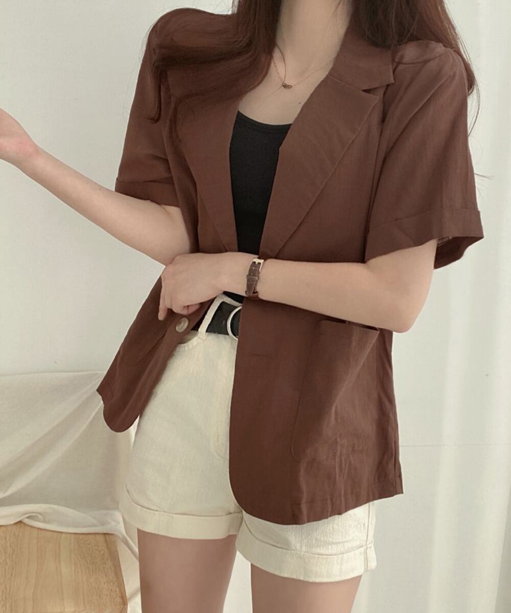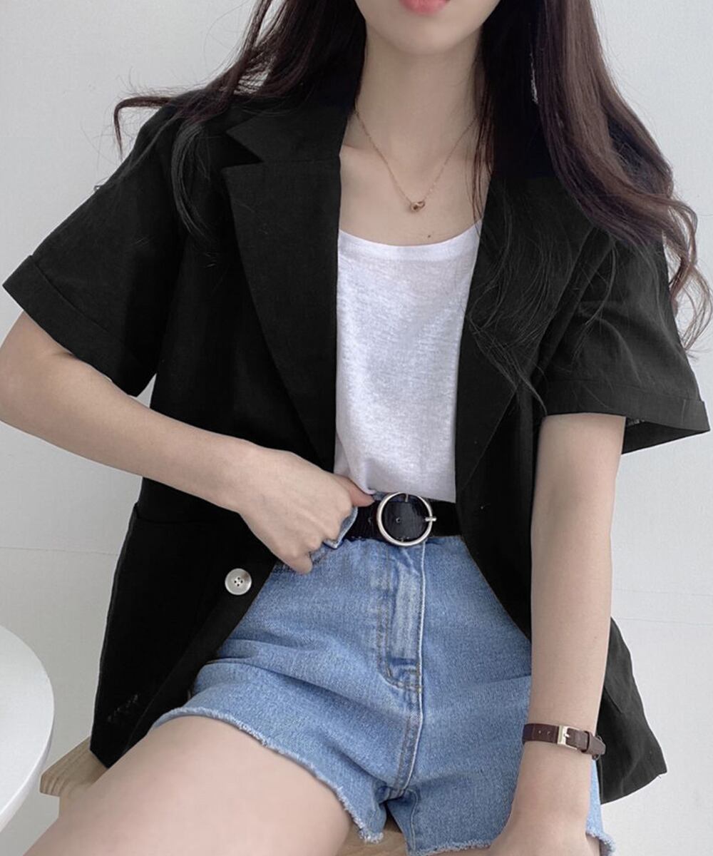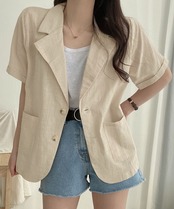 涼しげな綿麻素材で仕立てた半袖のテーラードジャケット。