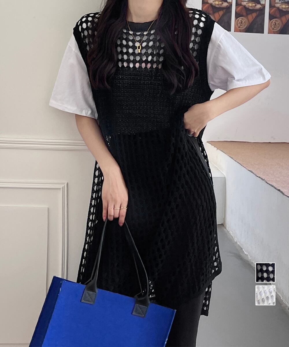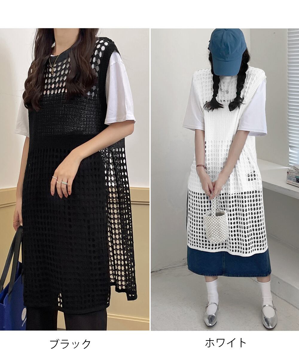 【日本倉庫からの発送】 透かし編みロングベストサイドスリット夏服 #[83YIKE-001_15600]【送料込み】【250725】