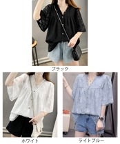 【日本倉庫からの発送】 Vネックフリルブラウス 花柄刺しゅう夏服 #[83FENYUN-001_24600]【送料込み】【250725】