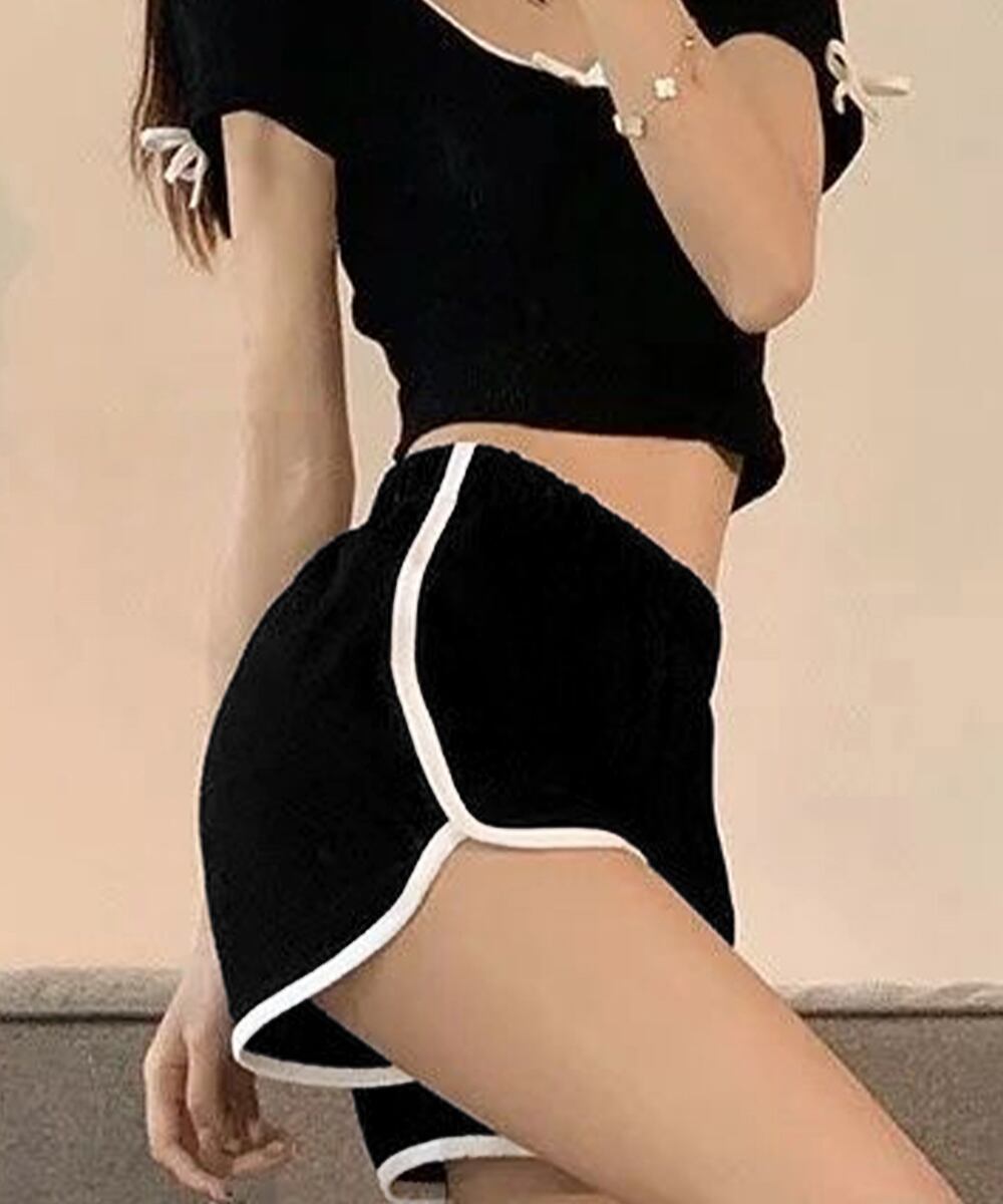 レディース ハイウエストショーパン ワンポイント 着やせ短パン カジュアルスポーツパンツ リラックススウェット服 運動着