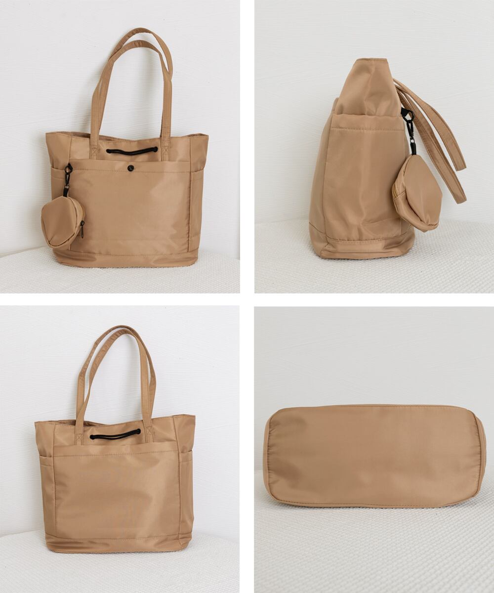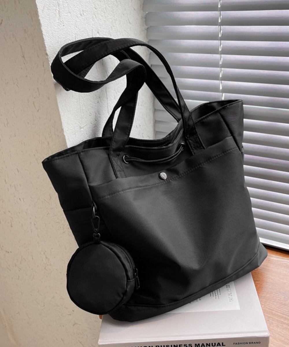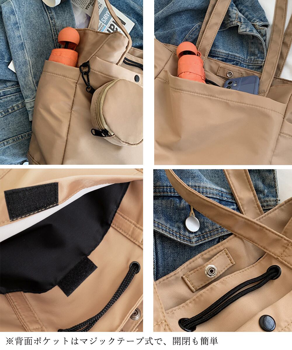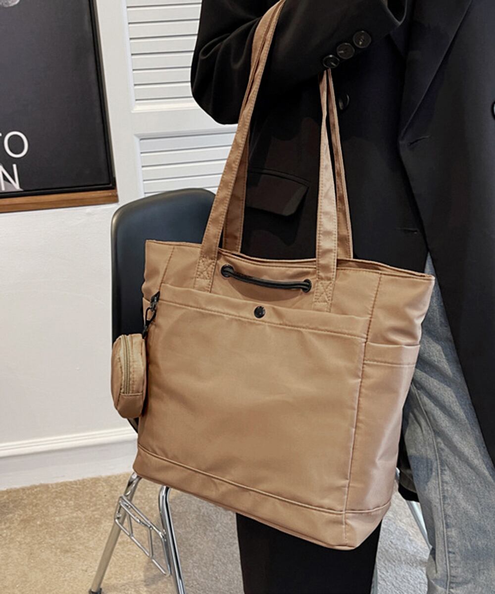 ミニポーチ付き ナイロンバッグ 軽量 手提げバッグ 通勤通学 肩掛けバッグ オフィスカジュアルマザーズバッグ 無地bag