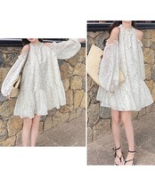 軽やかな素材感で、夏のリゾートやデートにもぴったりの一枚。