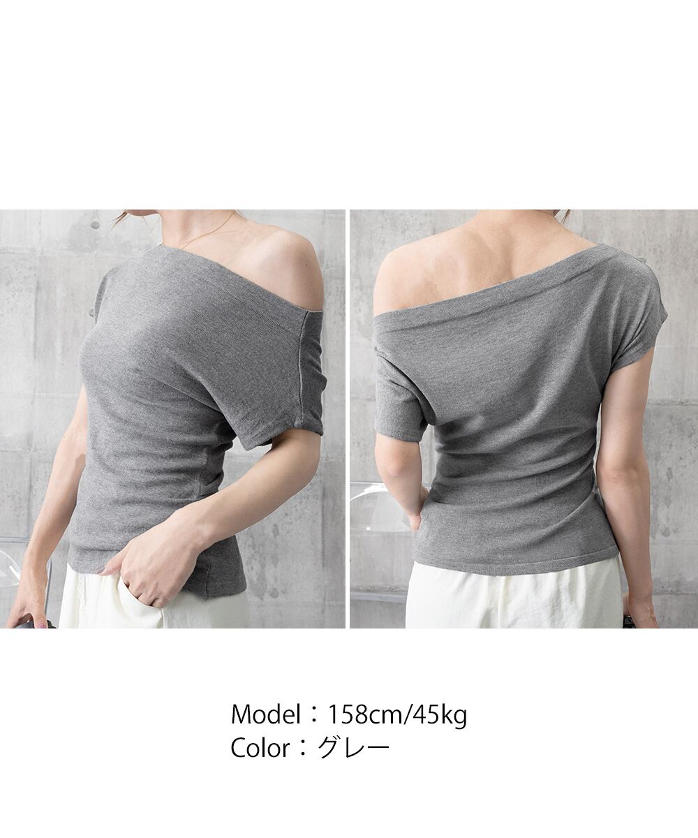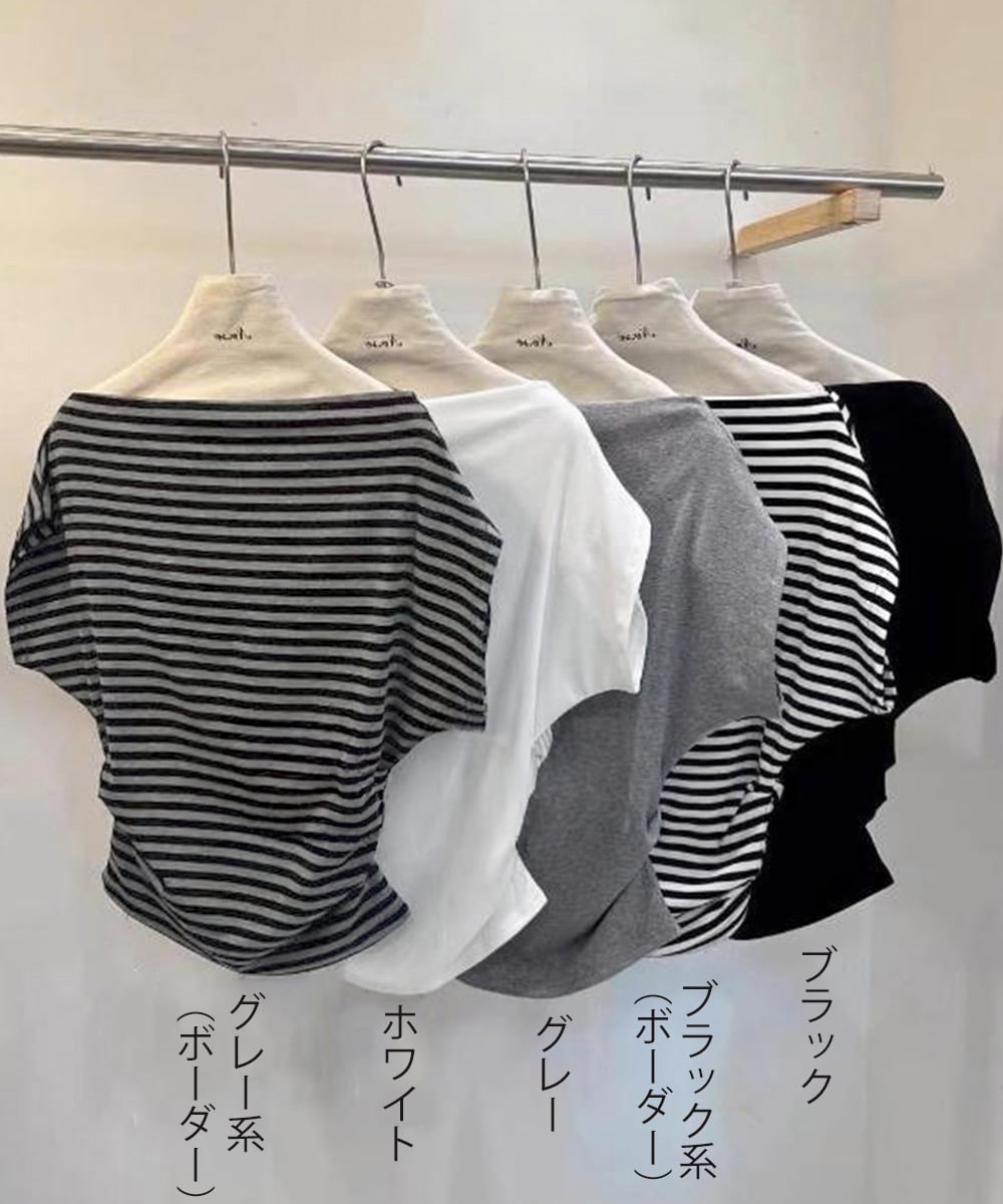 【日本倉庫からの発送】 オフショルダーカットソー サイドギャザー #[6CCFS-002_18600]【送料込み】【250725】