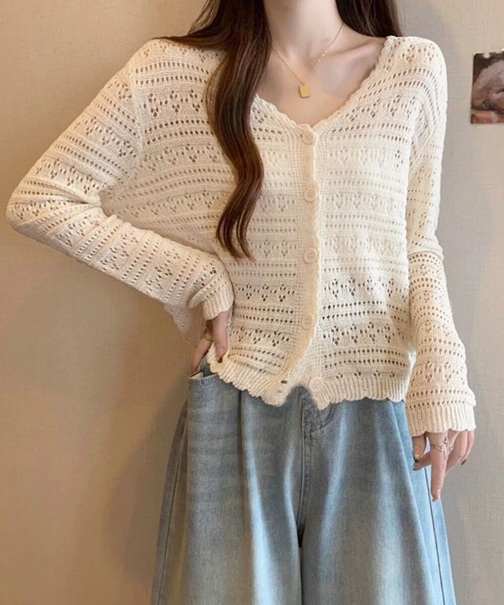 【日本倉庫からの発送】 透かし編みカーディガンフェミニン夏羽織り #[24TPS-045_13500]【送料込み】【250725】