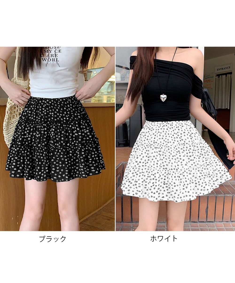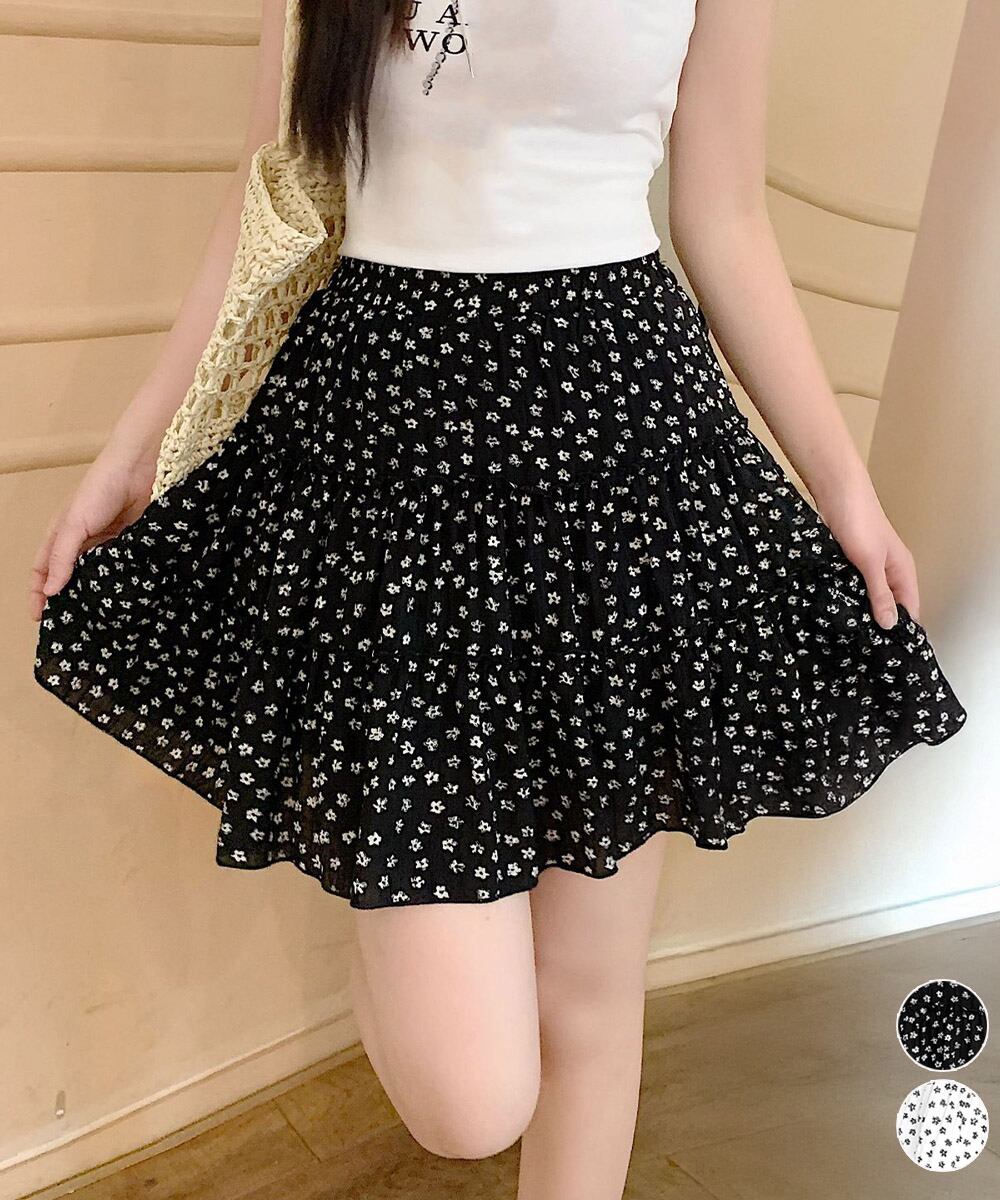 【日本倉庫からの発送】 ティアードスカート 小花柄ミニ丈スカート #[24SKT-004_20300]【送料込み】【250722】