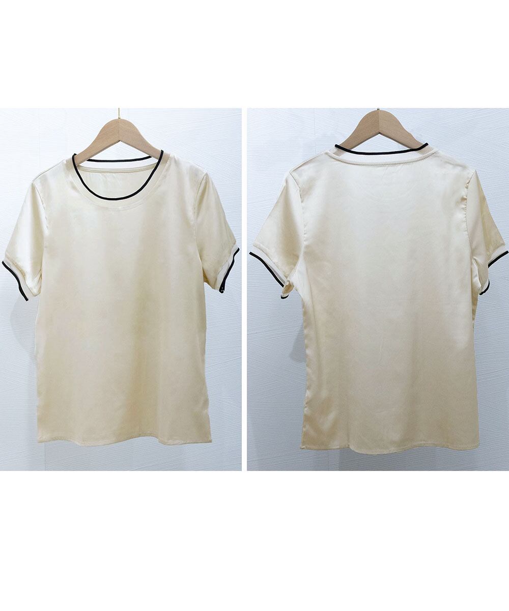 【日本倉庫からの発送】 クルーネック サテン風シャツブラウス #[98LUNC-002_18900]【送料込み】【250811】