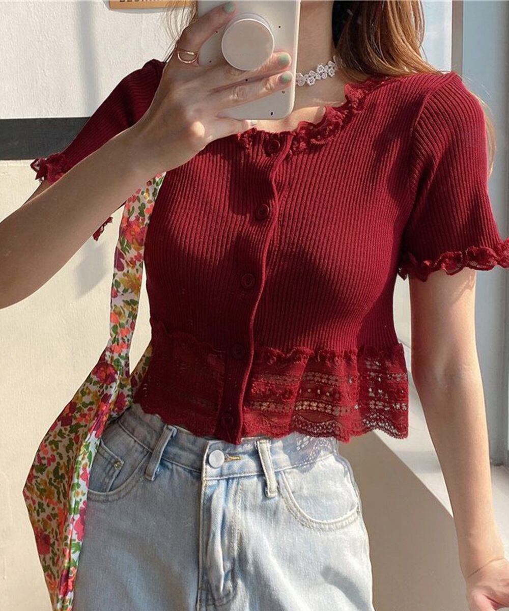 【日本倉庫からの発送】 フリルショートカーディガン レースニット #[90CHENXINI-020_13300]【送料込み】【250811】