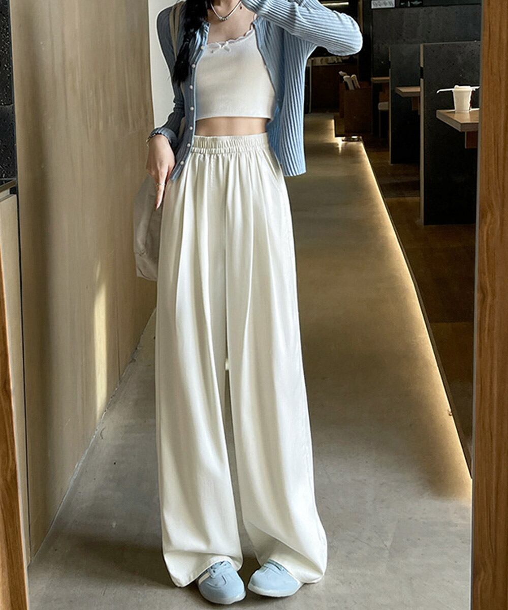 ドレープ感と軽やかさを兼ね備えた、夏にぴったりのデニム風ワイドパンツ。