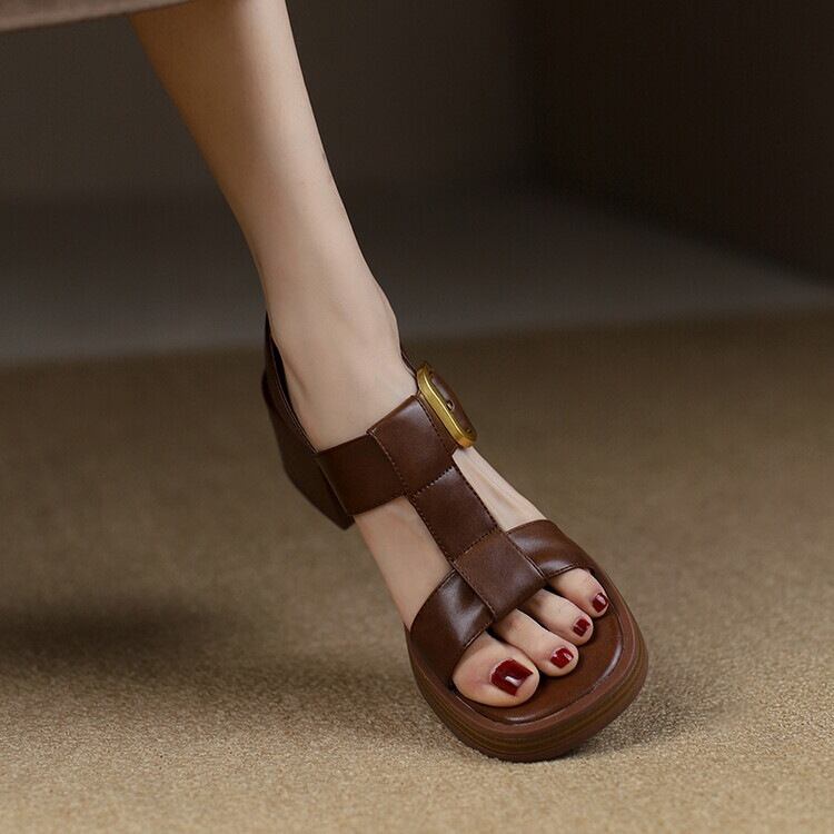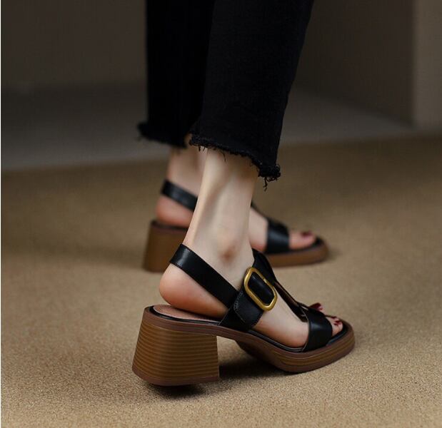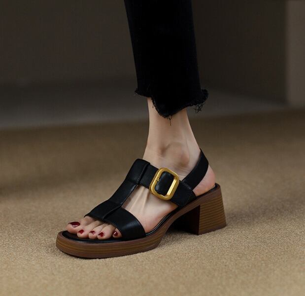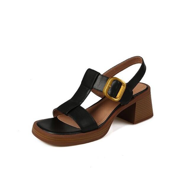 【海外からの取り寄せ】 2025新作 サンダル ゴールドバックル 滑り止め スタイルアップ 厚底 快適 チャンキーヒー #[sandal746_27800]【送料込み】【250807】