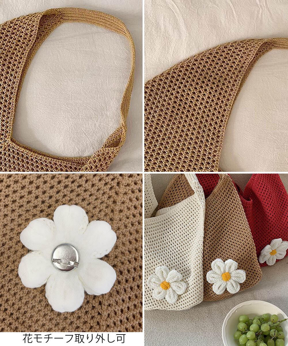 【日本倉庫からの発送】 トートバッグ花モチーフ付き編みバッグ軽量 #[90DACHENG-001_11800]【送料込み】【250823】