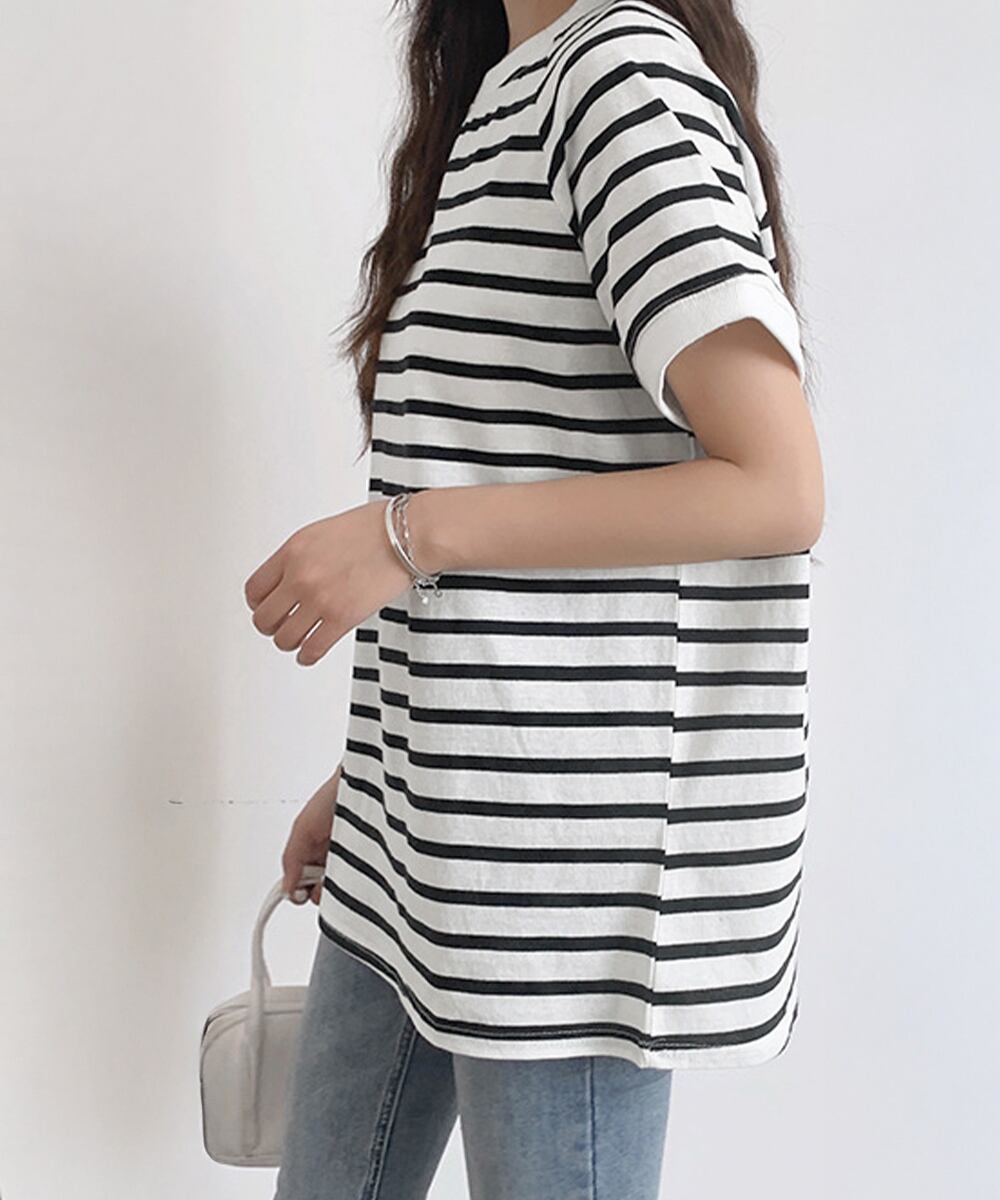 【日本倉庫からの発送】 ボーダーTシャツ 半袖チュニックTシャツ #[2CHENFAN-001_22300]【送料込み】【250811】