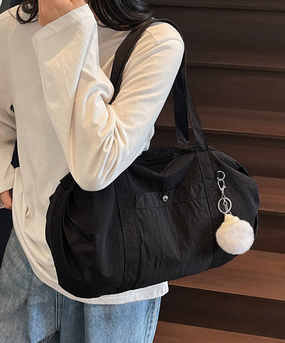 シンプルでカジュアルコーデに合わせやすく、軽量ナイロン素材を使用した大容量トートバッグ。