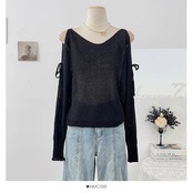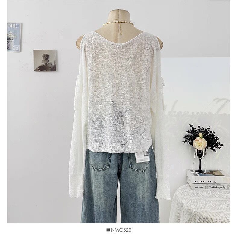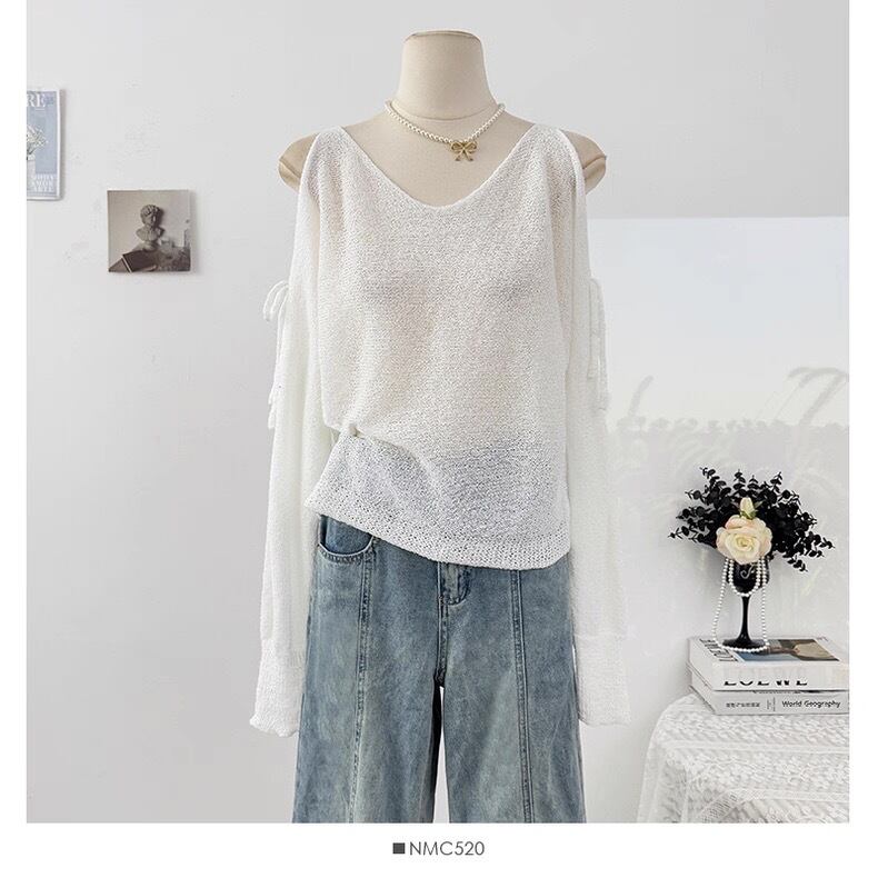 【海外からの取り寄せ】 新作 韓国風デザイン Vネック 透かし編み 長袖ニットトップス肩出し着やせ効果 #[tops665_13800]【送料込み】【250807】