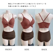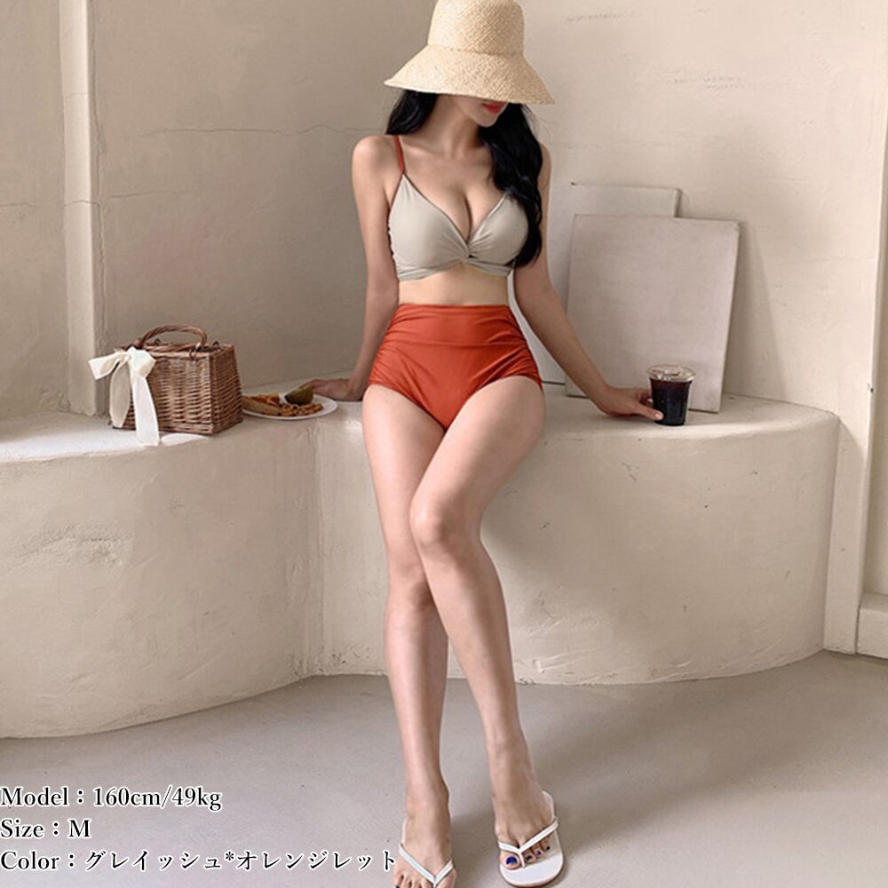 可愛い セパレート水着 クロスデザイン ハイウエスト ショーツ 韓国ファッション セクシー胸元 盛れるスイムウェア海水浴