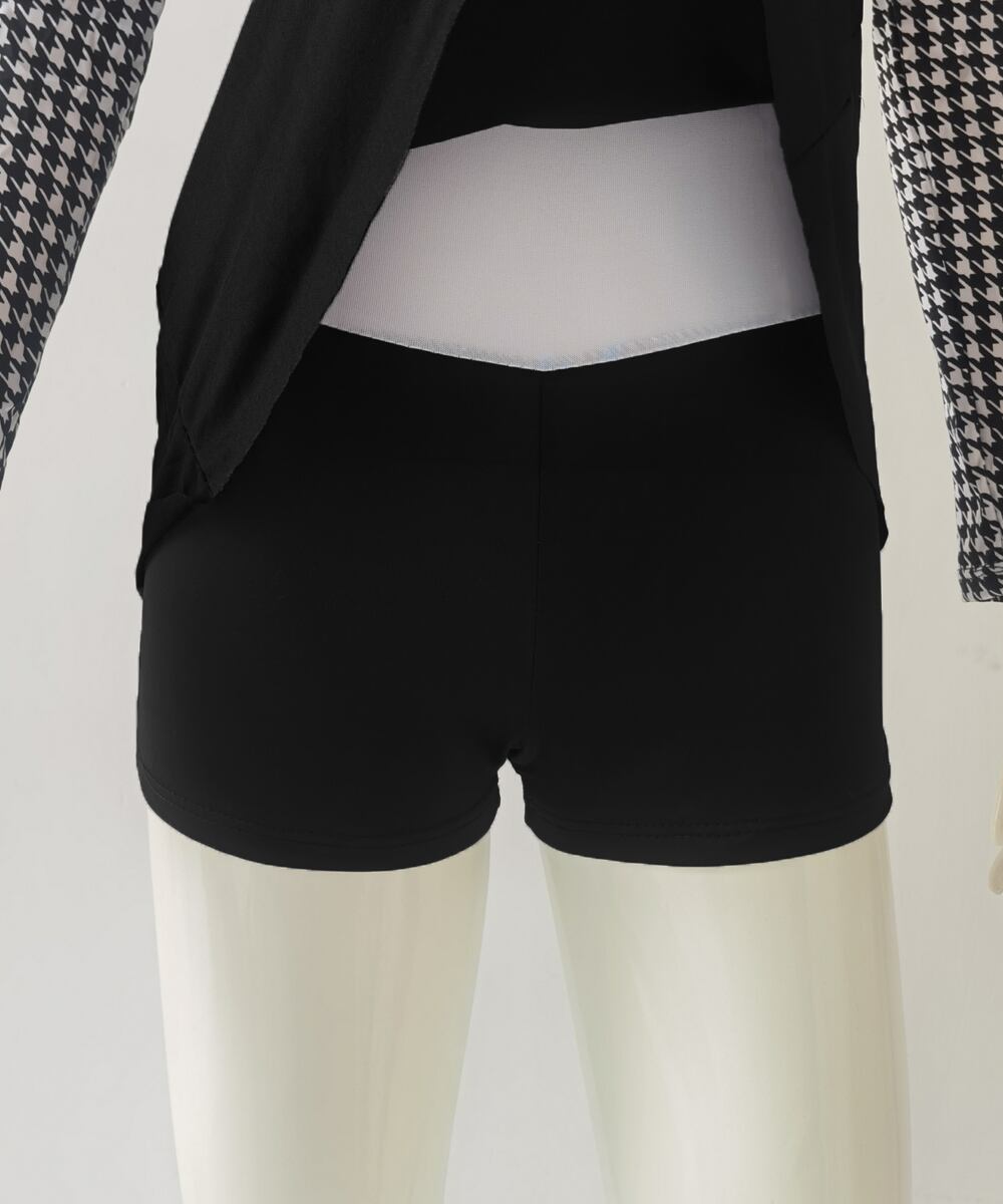 韓国風水着 レディース 長袖 日焼け対策 ショートパンツ一体型 露出控えめ水着 ハイウエスト ビーチウェア 背中見せ水着
