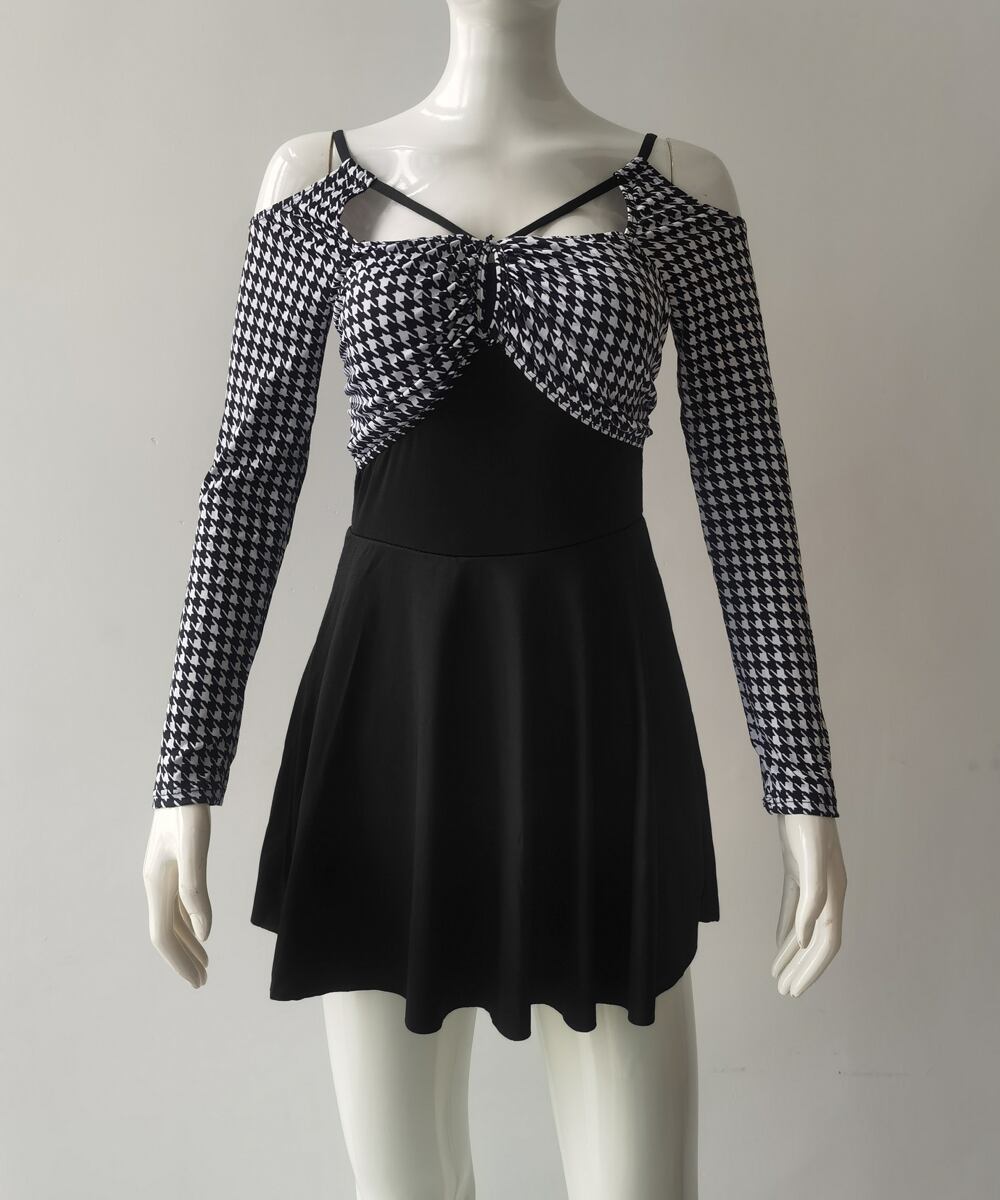 【日本倉庫からの発送】 ワンピース水着 千鳥柄 スイムウェア #[85YN-900460_16900]【送料込み】【250727】