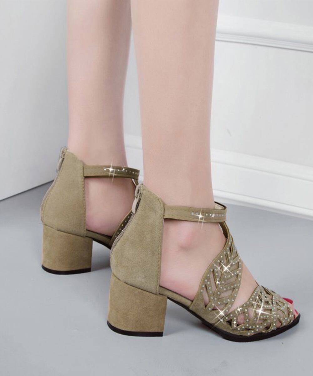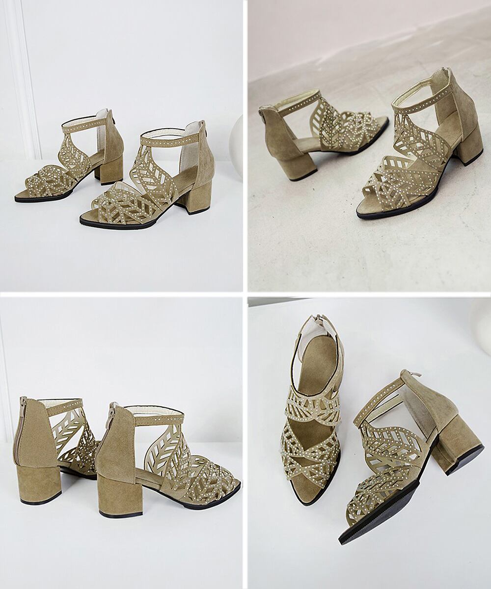 チャンキーヒールサンダル 歩きやすい バックジッパー 疲れない 太めヒール サマーブーツサンダル きれいめ キラキラ美脚