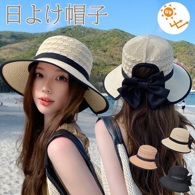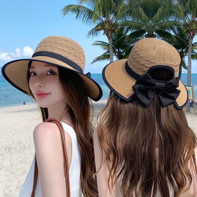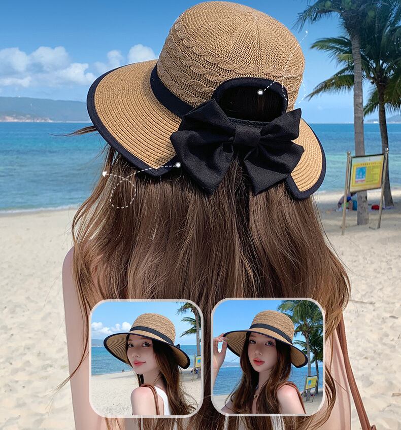 【海外からの取り寄せ】2025新作 レディース 帽子 ポニーテール UVカット 日焼け防止 折り畳み 麦わら帽子 リボン 通気性抜群 #[hat441_10800]【送料込み】【250807】