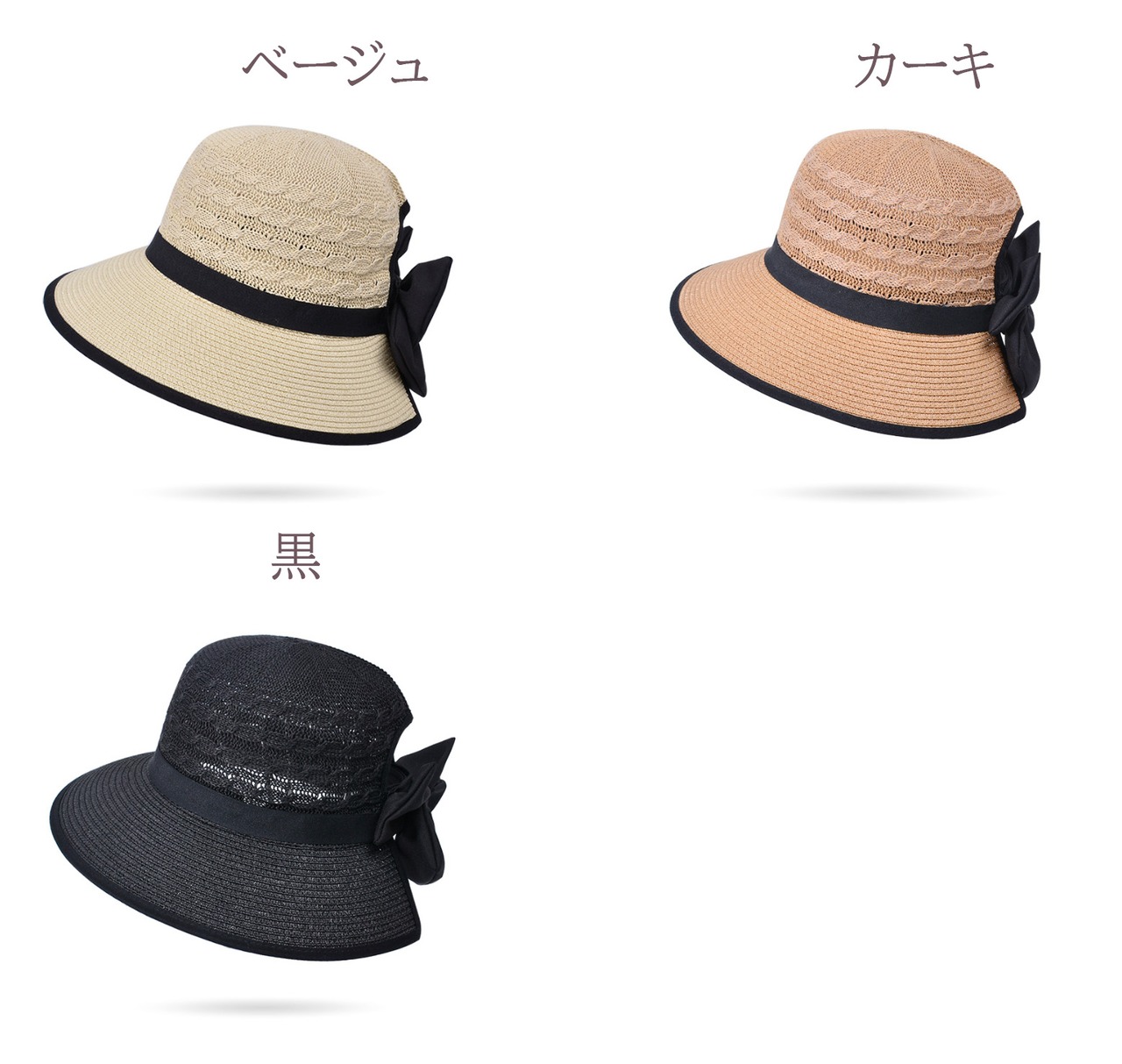 バックスタイルの大きなリボンが可愛い麦わら素材のつば広ハット