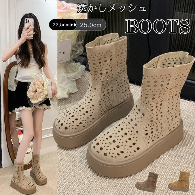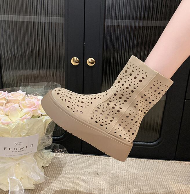 【海外からの取り寄せ】2025新作 レディース 透かし ショートブーツ 通気性抜群 美脚 脚長 サマーブーツ ブーツサンダル 厚底 #[boots374_29800]【送料込み】【250807】