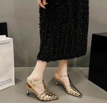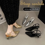 【海外からの取り寄せ】2025新作 レディース ポインテッドトゥ アンクルストラップサンダル 透かし編み キラキラ ツヤ感 #[sandal751_29800]【送料込み】【250807】