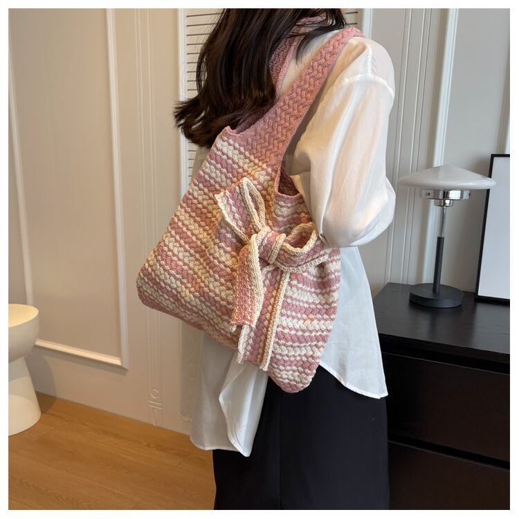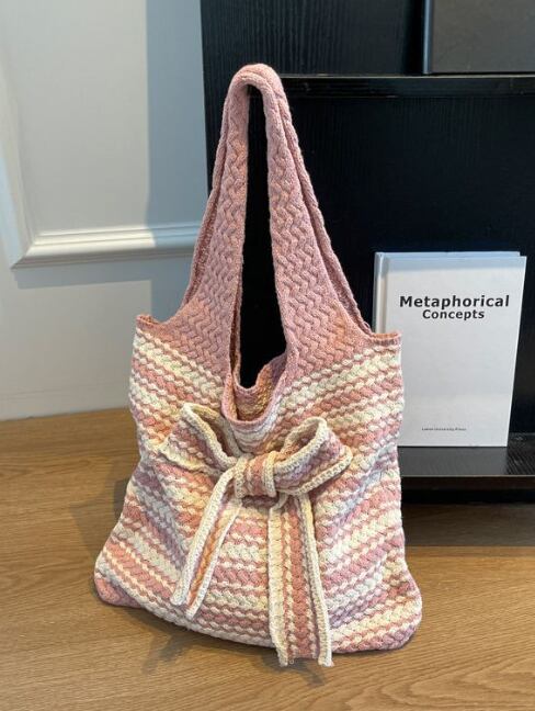 【海外からの取り寄せ】 2WAYショルダーバッグ 編み込みバッグ リボン 大きなショルダー トートバッグ かわいい #[bag1836_19900]【送料込み】【250807】