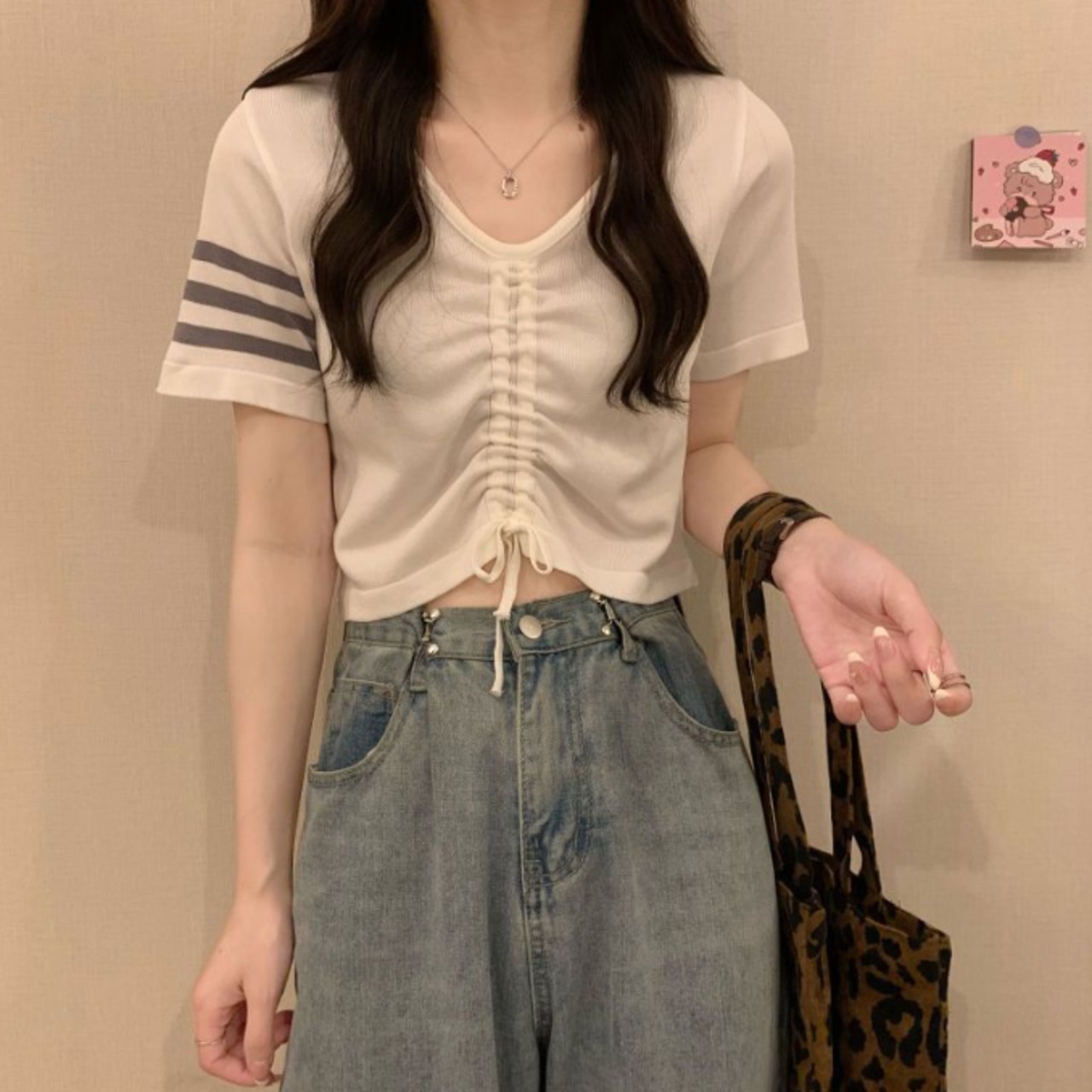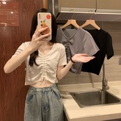 【海外からの取り寄せ】 2025新作 トップス ニット 半袖 抜け感 ショート丈 サマーニット Vネック #[tops662_8800]【送料込み】【250803】