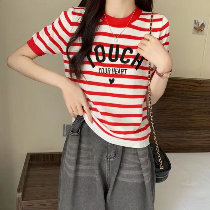 【海外からの取り寄せ】 2025新作 レディース ボーダー柄 ゆったりトップス プルオーバー 柔らかい カジュアル 春夏 #[tops661_11800]【送料込み】【250803】