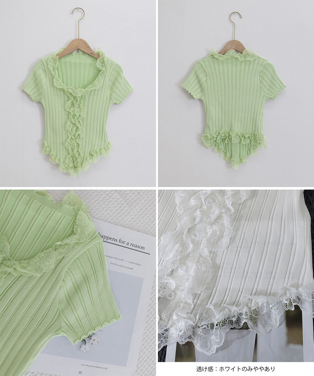 【日本倉庫からの発送】 レースフリルニットトップスショート丈夏服 #[6SENZHU-001_13500]【送料込み】【250823】