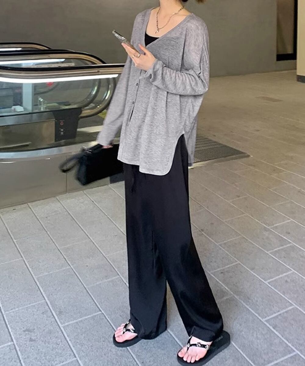 サイドスリット 薄手UVカーディガン 長袖ゆったり 紫外線対策 冷房対策上着 涼しい韓国風シアートップス 着やせ 前開き