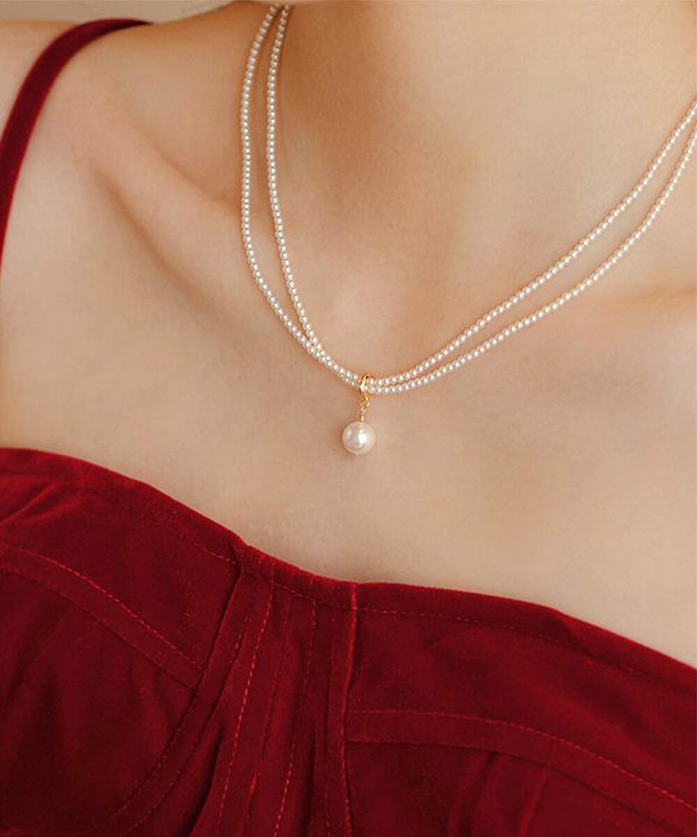 華やかさと上品さを兼ね備えた、2WAY仕様の2連パールネックレス。