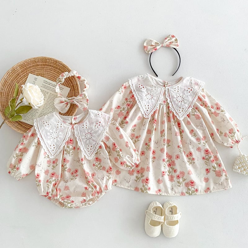 【海外からの取り寄せ】2025秋新作 子供服 姉妹お揃い 選べる2タイプ ヘアバンド付き 長袖 ロンパース ワンピース 可愛い #[ckd1095079_16000]【送料込み】【250913】