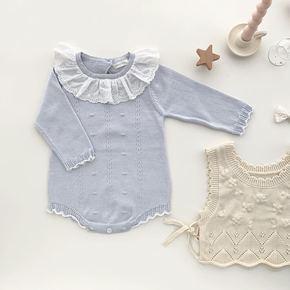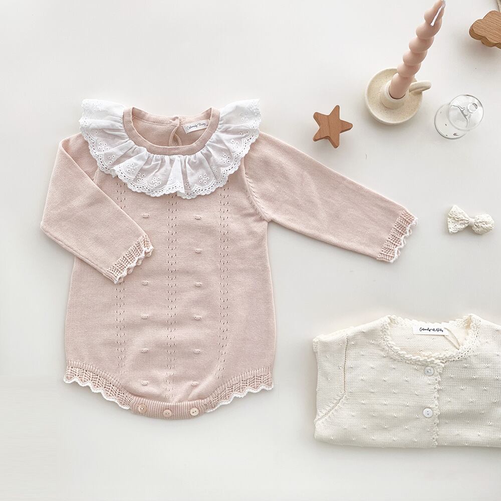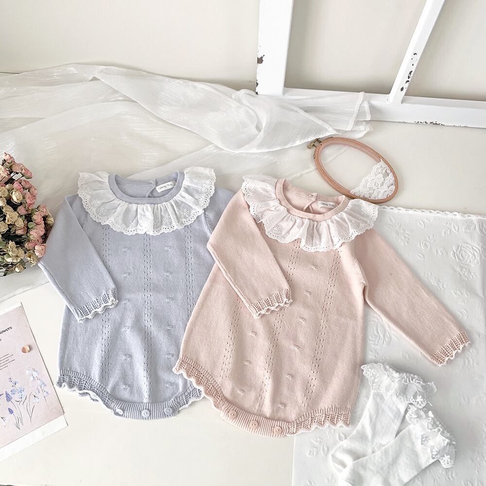 【海外からの取り寄せ】2025新作 ベビー服 女の子 レースカラー ニット ロンパース ジャカード 長袖 可愛い おしゃれ #[ckd1095077_19700]【送料込み】【250811】