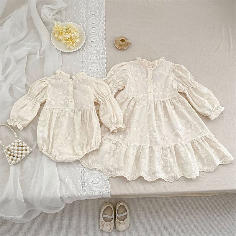 【海外からの取り寄せ】ins 春新作 子供服 姉妹服 選べる2タイプ 立ち襟 刺繍 花柄 ロンパース ワンピース 可愛い #[ckd1095049_21100]【送料込み】【260414】