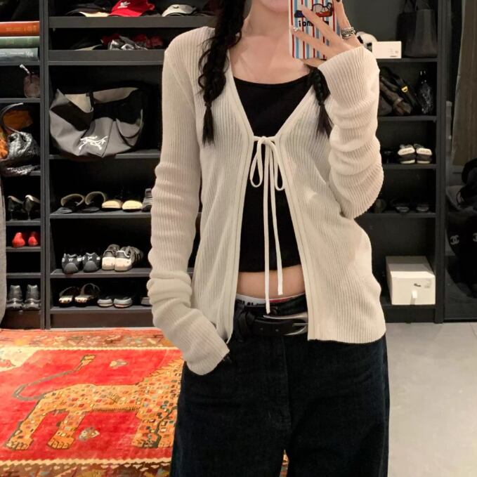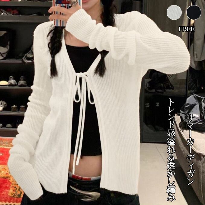 【海外からの取り寄せ】2025新作 レディース シアー透け感 カーディガン トップスオーバー サマーニット 透かし編み Vネック #[cardigan209_14800]【送料込み】【250822】